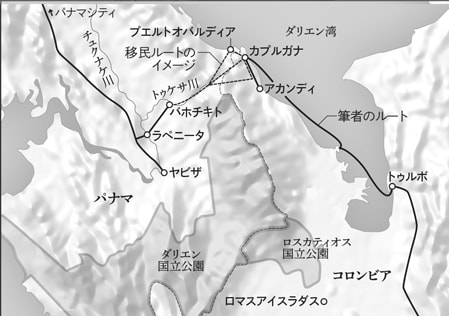 (3)ここで数十人の集団となり、ダリエンギャップを数日かけて踏破し、パナマへ抜ける。