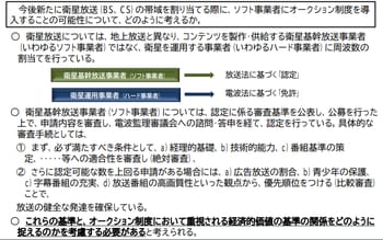 衛星放送事業者の場合は、電波割当ではなく、電波割当を受けた衛星運用事業者からのスロット(トランスポンダ)の割当だ。これも、「総合的判断」で不透明に決めるのではなく、オークションなどのより透明な方式に切り替えたらよい。総務省は電波オークションには強く否定的だが、トランスポンダ割当のオークションはそうでもなく、かつては真剣に検討され、規制改革推進会議でも議論したことがあった。当時は実現まで至らなかったが、今度こそ実現すべきだ。