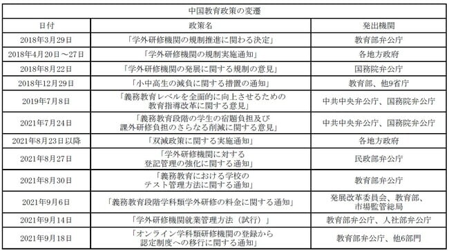 近年の教育改革の変遷を時間軸で辿ると、双減政策は7月24日に「突如」発令されたものではないことがよく分かる。