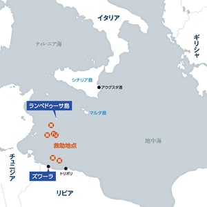 彼らは密航拠点の1つ、リビア西部ズワーラを丸1日前に出航し、約300キロ北に位置するイタリア最南端のランペドゥーサ島を目指していた。
