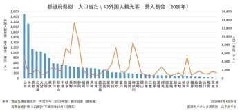 実は、国際交流については、大きな国内格差がある。例えば、旅行客だ。図1は、コロナパンデミック前の2018年の県民1人当たりの海外からの旅行客の受け入れ数だ。最も多いのは山梨で、ついで沖縄、京都、北海道、大分、大阪と続く。逆に最も少ないのは埼玉で、茨城、福島、山口、島根と続く。「千代田幕府」のお膝元である首都圏は、日本国内で外国人の受け入れが多い地域ではない。