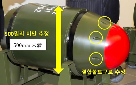 金正恩の身長や写真に映っている軍幹部の身体的特徴に関する情報から、火山31は直径が約500mm、長さが約900mmの小型核弾頭だ(資料1)。