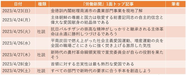 4月23日付1面トップは、金徳訓(キム・ドックン)内閣総理が南浦(ナンポ)市の農業部門事業を「現地了解」したとの記事であった。最高指導者が「現地指導」を行い、部下である内閣総理(旧・政務院総理)が「現地了解」に赴くというスタイルは、金日成(キム・イルソン)時代の慣例を金正日(キム・ジョンイル)政権末期に復活させたものである。