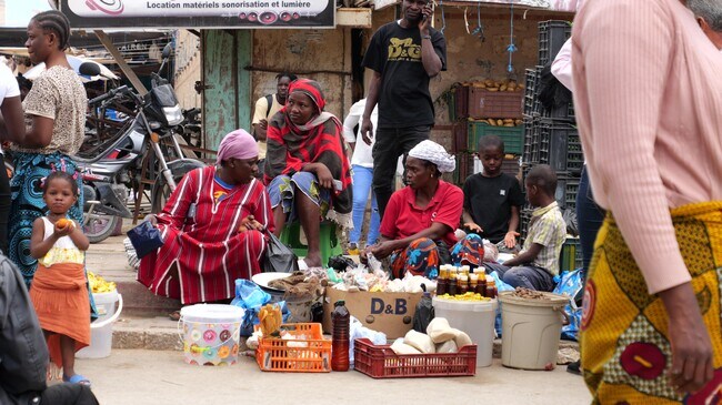 公園の外にある地元市場では、腰に布を巻いた黒人女性が路上にバケツや段ボールを置き、アフリカ風の香辛料や食材を売る露店が並んでいた。行き交う客も黒人が目立つ。声をかけると、コートジボワールやカメルーン、ギニア、ナイジェリアなどサハラ砂漠以南の各地の出身者が集っていた。