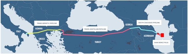 トルコは1990年代後半から、自国の天然ガス需要増加を懸念してイランやアゼルバイジャンとのパイプライン接続に向けた働きかけを強めてきた。米国はトルコを通じて欧州諸国へのガス輸出が可能であることに着目し、この取り組みを「脱ロシア天然ガス供給源」の確保につながるとして強く支持してきた。この試みは現在、カスピ海に位置するアゼルバイジャンのシャー・デニスガス田から南コーカサス天然ガスパイプライン(SCP)、アナトリア横断天然ガスパイプライン(TANAP)、アドリア海横断パイプライン(TAP)の3つの天然ガスパイプラインを経て南欧諸国へ天然ガスを提供する、「南ガス回廊(Southern Gas Corridor)」(図2)に結実している。ロシアのウクライナ侵攻以降は、EU(欧州連合)が主導する「南ガス回廊」の拡張に向けた取り組みが進んでいる。