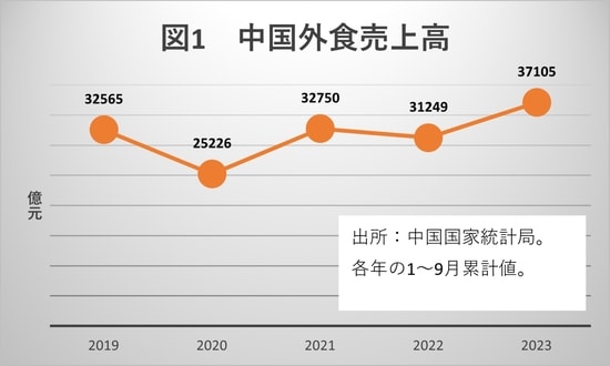 筆者は今年3回、中国を訪問した。まず驚いたのがレストランの混雑だった。知人との会食では「満員だったが、社長と知り合いだったので席を確保できたんだ」などと自慢されたことも。たまたまいった店が混んでいたわけではない。統計を見ても、外食売上高(2023年1~9月)は前年同期比18.7%増と爆発的に成長している。