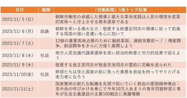 11月8日付1面に掲載された社説は、26日実施予定の地方選挙を取り上げた。8月末に改正された選挙法に基づいて実施される選挙では、「国家と人民に良心で、信念で、真心で仕えることができる人、わが党、わが国家、わが人民のために一つでもより有益で素晴らしい仕事を見出して実行する人だと確固として認められる代表が代議員に選出されることになる」と述べられた。改正選挙法の全文はまだ公表されておらず、この社説の記述だけでは具体的な改正点が分からない。
