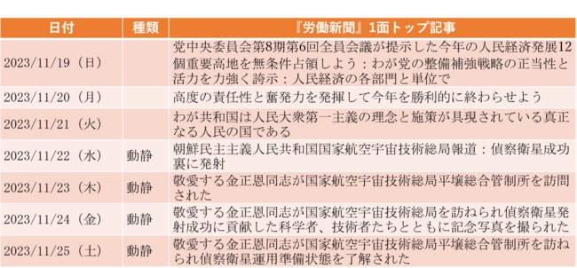 衛星打ち上げは2017年ICBM発射に匹敵する慶事扱い、「自らの力と技術力で」の開発を誇示(2023年11月19日~11月25日)