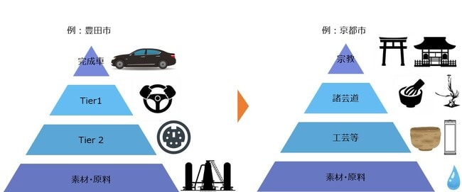 筆者は、商社の営業部で自動車部品の売買を担当していた頃を思い出した。自動車業界は、小さな部品を作るTier2、Tier2で作った部品を大きい部品に組み立てるTier1、そして最終的に自動車にするアセンブリに分かれている。足しげく通う京都という町が、豊田市のような自動車城下町みたいに感じられた。