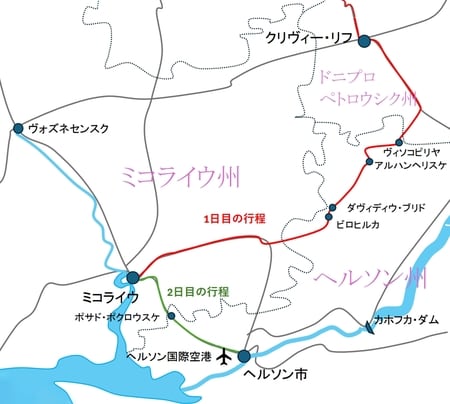ウクライナで戦争犯罪の訴追に取り組むサンマリノの弁護士アキーレ・カンパーニャとアンドリー、筆者たちは2台に分乗し、60キロあまり南東のヘルソン市を目指した。
