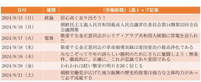 9月15日付第1面下段には、「2023年の10大最優秀企業が選定された」との記事が掲載された。昨年から始まった試みのようで、今回は、龍城(リョンソン)機械連合企業所、南興(ナムン)青年化学連合企業所、興南(フンナム)肥料連合企業所、順川(スンチョン)セメント連合企業所、北倉(プクチャン)火力発電連合企業所、順川火力発電所、端川(タンチョン)精錬所、新義州(シニジュ)化粧品工場、平壌(ピョンヤン)歯科衛生用品工場、羅先(ラソン)ヘソン総合開発事業所が選ばれた。これらの企業は昨年、経済計画を超過達成したのみならず、「自らの力」で生産の土台をしっかりと構築し、従業員一人当たりの生産額と工業総生産額、平均労働報酬を高い水準に引き上げたのだという。
