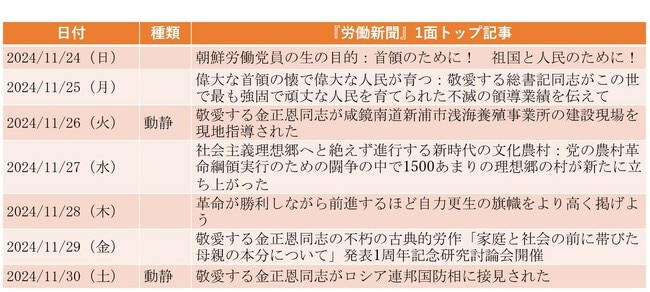 ロシアへの派兵に対する言及は依然として見られないものの、金正恩自身が「帝国主義」と戦うプーチン政権への全面支持を繰り返し表明することによって、北朝鮮国民が派兵の事実を知ったとしても大きな衝撃を受けないよう環境整備が進められたと言える。