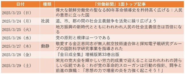 3月27日付は、金正恩(キム・ジョンウン)国務委員長が新型の無人ドローンの性能実験を指導したことを伝えた。「多様な戦術攻撃任務の遂行に利用できる自爆無人機の打撃能力が余すところなく発揮された」という。金正恩は無人装備とAI技術分野は「最優先で重視して発展させるべき」であるとして、中長期的に強力に推進することが重要だと述べた。