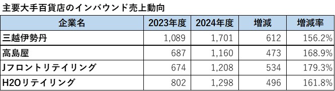 大手百貨店の2024年度決算は、三越伊勢丹、高島屋、J.フロントリテイリング、エイチ・ツー・オーリテイリングの4社とも増収増益を達成し、軒並み過去最高益を更新、絶好調ともいえる結果となった(図表1)。富裕層、インバウンド向けの高額商品の売上増加が貢献しており、特に、訪日外国人客の動線が重なる大都市基幹店における免税売上(インバウンド)が大きく寄与したようだ(図表2)。各社の免税売上実績は5~8割増と大きく伸びて、総額売上拡大の過半を占めており、前期の増収に大きく貢献したことがわかる。訪日外国人数は着実に増え続けているため、このインバウンド需要の拡大は今後も期待出来そうに思うが、今期の百貨店大手各社の免税売上目標はマイナスで設定されている。実は百貨店免税売上は、2025年3月以降、マイナスに転じているのである。すこし様子をみてみよう。