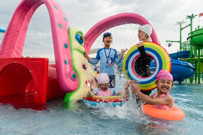 元山葛麻海岸観光地区のプールで遊ぶ子供たち。写真は7月のオープン時のものだが、同リゾート地区についてはたびたび報じられている[2025年7月2日、北朝鮮・元山](C)AFP=時事