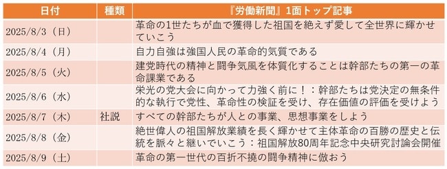 「祖国解放」80年を前に金正恩の動静なき1週間(2025年8月3日~8月9日)