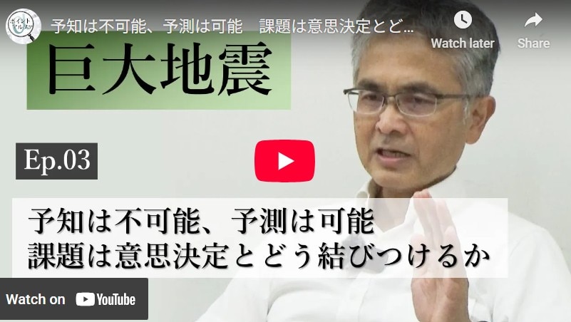 「したがって、現時点では前兆に基づく地震予知はできない、というのが地震学のコンセンサスです。一方で、確率論に基づく予測は一定程度可能、と世界的に考えられています」