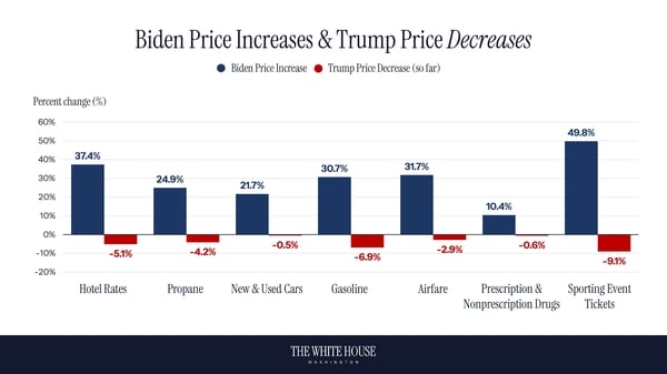 トランプ氏が12月17日に国民向け演説を行ったのは、『暮らし向きの危機』への配慮に加え、この11カ月間の実績を強調する狙いがあったとみられる。演説の冒頭、トランプ氏は「11カ月前、私は深刻な課題を抱えた状況を引き継いだ。いま、その立て直しに取り組んでいる」と語りかけた。演説は18分間にわたり、ジョー・バイデン前政権の批判と、自身の政権での成果の強調を軸に構成。特に物価については、バイデン前政権で「ガソリンは30〜50%上昇、ホテル料金は37%、航空運賃は31%上昇したが、足元でそれらはすべて下がり始めており、しかも急速に低下している」と主張した。