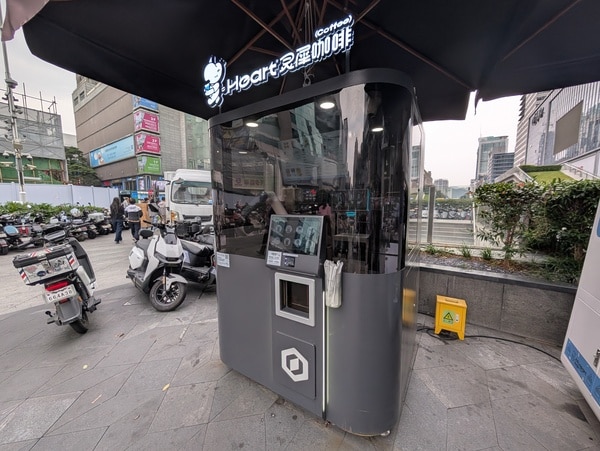 電気街の通路にはロボットアーム自販機もあった。注文すると、ロボットアームがカフェラテを作ってくれる。コロナ禍前にもロボットアームを使ったカクテルバーなど似たようなものはあったのだが、違いは「大きさ」だ。小さく力が弱い協働ロボットが使われているので、自販機として小型化できている。大きな産業用ロボットは日本のファナックと安川電機、スイスのABB、ドイツのKUKAからなるBIG4がシェアを握っているが、協働ロボットでは中国企業も高いシェアを持つ。