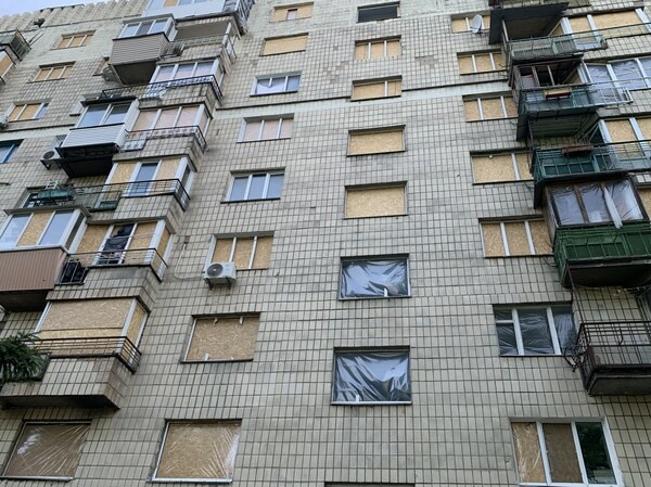 ウクライナ国立工科大学の教員カテリーナ・ルゴウスカは、このアパートの最上階に住んでいた。同じ縦列の7階には両親も暮らす。当日は、攻撃の直前に警報が発令されたため、自宅アパートの真下にある地下シェルターに避難していた。自宅がある箇所は着弾地点から少し離れており、部屋の内部に大きな被害は生じなかったが、衝撃で窓ガラスが割れてしまった。