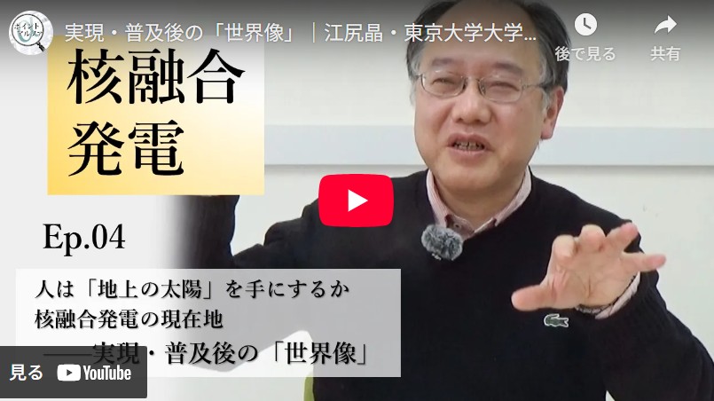 長野光と関瑶子のビデオクリエイター・ユニットが、現代のキーワードを掘り下げるYouTubeチャンネル「Point Alpha」。今回は、日本の優位性、核融合発電が実現・普及することによって変わる世界像について、東京大学大学院新領域創成科学研究科教授の江尻晶氏に話を聞いた。 ※主な発言を抜粋・編集してあります。
