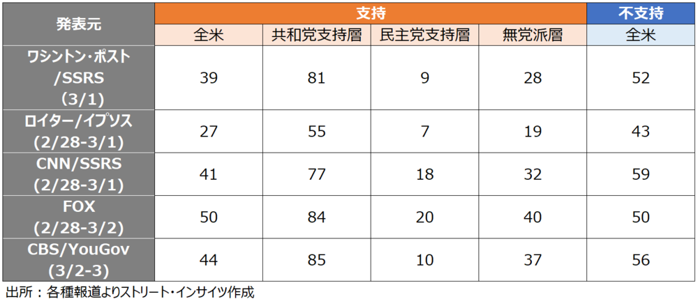 米国内のイラン攻撃に対する評価は、党派別で真っ二つに分かれている。今後の評価を左右する要因としてはまず米兵の死者数が挙げられようが、インフレ動向が与える影響も見逃せない。米1月生産者物価指数(PPI)では、流通マージンを示すトレードサービスは過去最高を記録している。足元では、イランによる事実上のホルムズ海峡封鎖を受けてWTI原油先物が一時1バレル81ドル台(期近の4月物)まで急伸した(編集部:6日には一時92ドル台まで上昇)。供給網の混乱はインフレをさらに後押ししかねず、米国経済の急所となりつつある。
