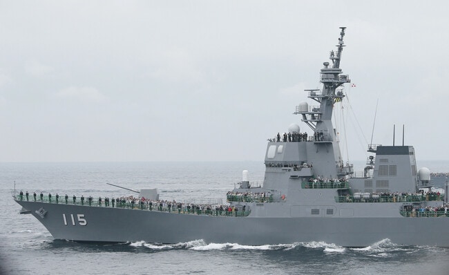 防空に比較的強い汎用護衛艦をバブ・エル・マンデブ海峡からアデン湾周辺の洋上防空に当たらせるなど、複数のオプションが検討し得る[海上自衛隊のあきづき型護衛艦「あきづき」](C)時事