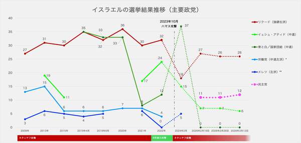 しかし、2023年10月のハマスによる奇襲攻撃という歴史的失態を経て、複数の左派政党が結集し、主要政党への復帰を目指している。2024年に新たに発足した「民主党」は、労働党とメレツが合併した中道左派政党だ。イスラエルの民放Channel12の世論調査では、民主党は10議席以上を獲得することが予想されている。