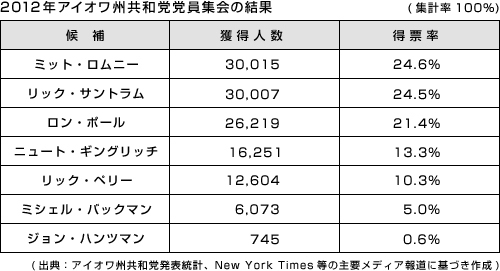 アイオワ州党員集会:ロムニーを軸に展開されることになった大統領候補指名獲得争い