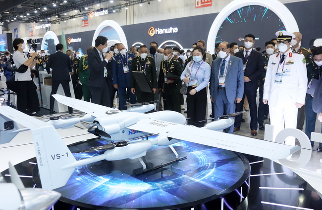 9月21〜25日に開催された「DX KOREA 2022」にはスロバキア、ルーマニア、パキスタンの各国防大臣も訪れた (C)EPA=時事