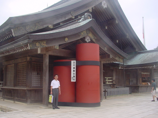 平成12(2000)年に、出雲大社境内から13世紀半ばの巨大木柱(中心の心御柱[しんのみはしら]と宇豆柱[うずばしら])がみつかっている。直径125~140センチの杉の巨木を3本まとめ、金輪[かなわ]で束にしていた。