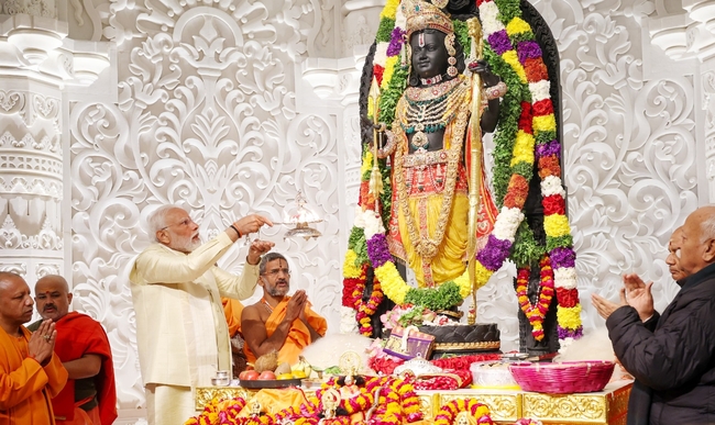 寺院内部には高さ1.3メートルのラーマ神像が据えられ、スピーチしたモディ首相は「新時代の到来だ」と祝辞を送った。式典の模様は国営テレビなどでライブ中継され、翌23日の一般公開では約30万人の参拝客が長い列をつくった。