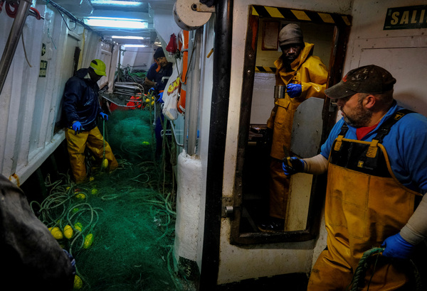 「スペインに到着する筏を見るのは、とてもつらいことだ。自分が何と向き合っているのか知らずに海を渡るのは、死に直面することを意味している」[サリダル号で漁網を巻き上げるディウフ=2023年12月11日、スペイン・ガリシア州ブレーラ近郊のカンタブリア海](C)REUTERS/Nacho Doce