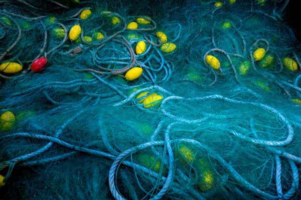 漁に出発する前のサリダル号の船床に置かれた網[2023年11月24日、スペイン・ガリシア州セデイラ近郊](C)REUTERS/Nacho Doce