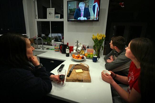 2020年3月23日、ジョンソン英首相(当時)はテレビ演説でロックダウンの開始を国民に伝え、不要不急の商業施設やサービスの閉鎖と2人以上の集会の禁止に踏み切った(C)AFP=時事