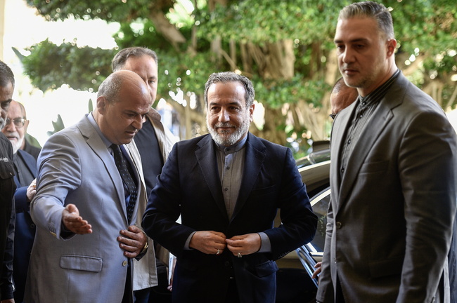 中東はイスラエルとイラン双方の計算の板挟みになっている[レバノン政府関係者との会談を行うためベイルートを訪問したイランのアッバス・アラグチ外相(中央)=2024年10月4日、レバノン・ベイルート](C)EPA=時事