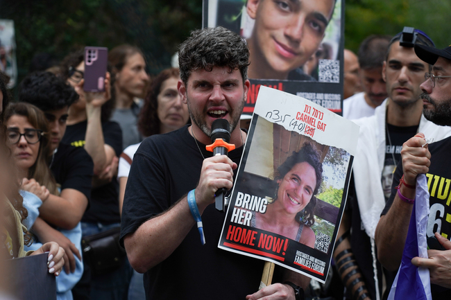 人質となった家族の解放を求めてデモに参加するギル・ディックマンさん(2024年10月7日、以下写真はすべて筆者撮影)