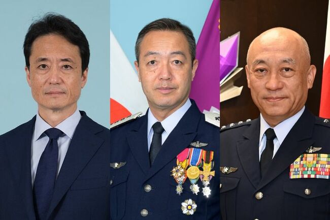 この夏の防衛省トップ人事には陸海空自衛隊と背広組それぞれの思惑がにじむ[左から大和太郎防衛事務次官、内倉浩昭統合幕僚長、南雲憲一郎統合作戦司令官](いずれも防衛省HPより)