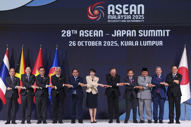 エネルギー分野で日本が「世界の真ん中で咲き誇る」ためには、インドやASEANとの協力を進めていくことが極めて重要だ[第47回ASEANサミットに合わせてマレーシアを訪れ各国首脳と記念撮影に臨む日本の高市早苗総理(中央)=2025年10月26日、マレーシア・クアラルンプール](C)EPA=時事