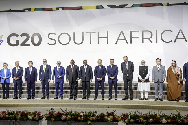 米トランプ大統領は11月に南アフリカで開かれたG20サミットに参加しなかった[左から6人目が南アのラマポーザ大統領=2025年11月22日、南アフリカ・ヨハネスブルク](C)EPA=時事