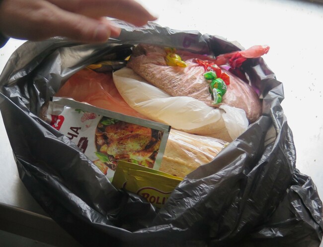 ロシア軍に包囲された北部チェルニヒウに食料を運び込んでいたのは、若者たちでつくるボランティア団体だった[ボランティア団体「善意の炎」が配布していた食料袋。3日分の食べ物が入っている=2022年4月、筆者撮影]