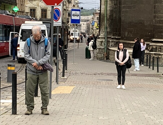 毎朝9時、リヴィウの市民はサイレンの合図とともに全員1分間の黙祷を捧げる(筆者撮影)